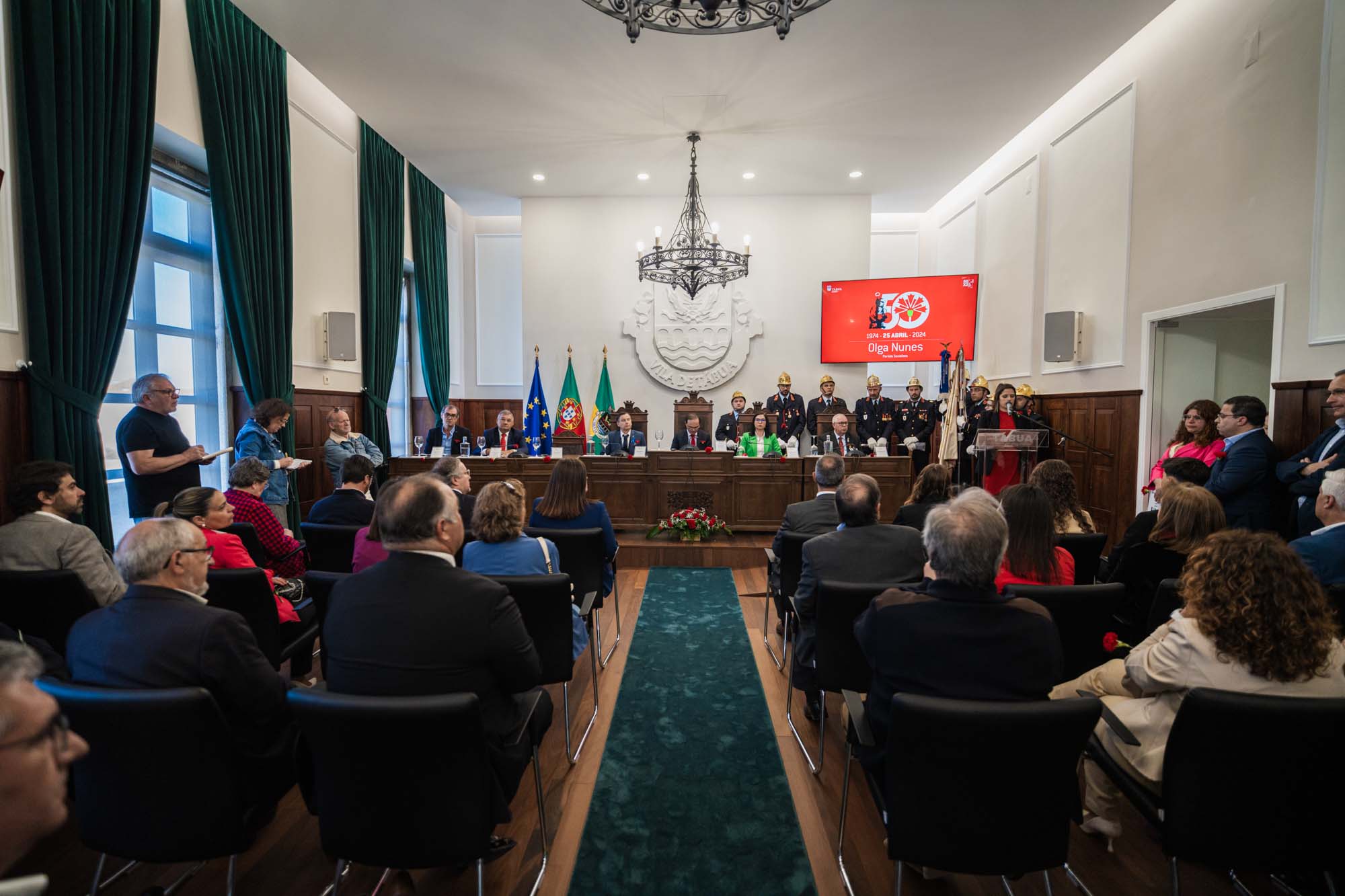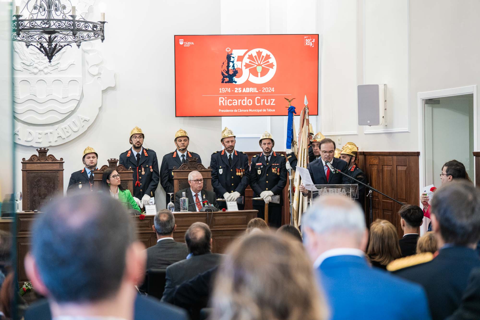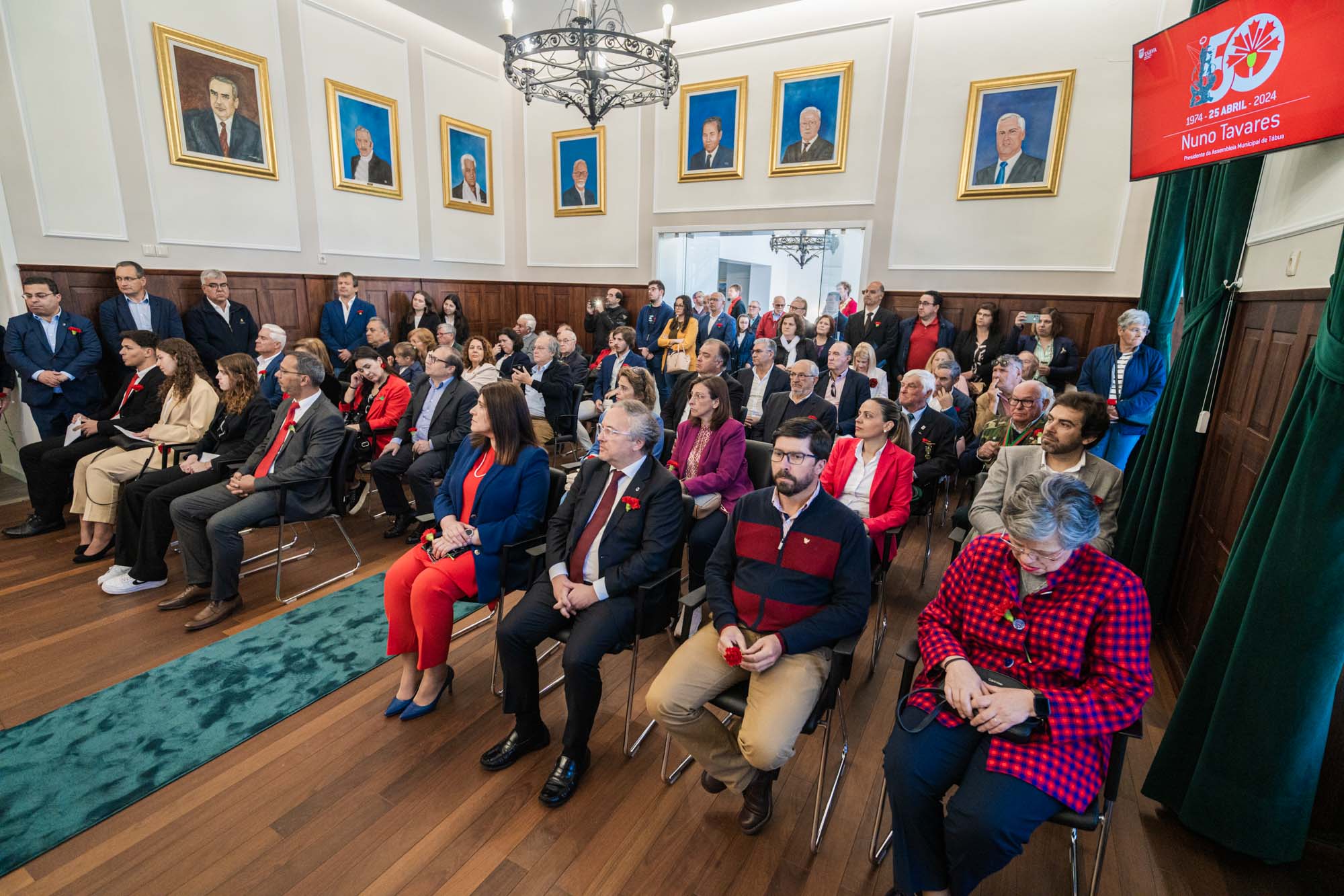As comemorações dos 50 Anos do 25 de Abril no Concelho de Tábua decorreram com a realização de várias iniciativas que dignificaram e exaltaram a importância desta data que restituiu a Democracia e a Liberdade a Portugal. Na Sessão Solene evocativa, realizada no Salão Nobre dos Paços do Município, as diferentes forças politicas representadas nos Órgãos Autárquicos, tiveram a oportunidade de realçar as conquistas alcançadas com o regime democrático que emergiu do 25 de Abril, evidenciando que o Portugal atual, apesar de algumas imperfeições, beneficiou de um enorme desenvolvimento a todos os níveis. O Presidente da Assembleia Municipal de Tábua, Nuno Tavares, referiu-se aos benefícios que o País alcançou a nível social e que abriu as portas à promoção da igualdade, sendo de destacar os testemunhos partilhados pelos jovens alunos Tabuenses, Leonor Pereira, João Oliveira e Laura Gomes, que enalteceram o valor que é viver em liberdade e poder exprimir todos os sentimentos e opiniões e participar livremente na vida da sua comunidade. Considerando que Abril é amanhã, Ricardo Cruz elegeu os jovens como uma das prioridades para o futuro, referindo que a melhor homenagem ao 25 de Abril, é ter a capacidade de transmitir os seus valores e princípios às novas gerações, os quais significam mais responsabilidade e compromisso individual e coletivo. Neste olhar para o futuro, partilhou a informação de que foi já submetida a candidatura ao PRR para a requalificação e ampliação da Escola Secundária de Tábua, num investimento de 6 milhões de euros, bem como das iniciativas de fomento à atração e fixação de jovens no Concelho de Tábua, porque é com estes que, de forma livre e transparente, se deve continuar a edificar Abril. Referindo que o Poder Local Democrático surgiu com o 25 de Abril, e que desde então as Autarquias Locais têm sido um parceiro fundamental do Estado e em que o reforço das competências é um reconhecimento da sua capacidade de gerir melhor os recursos, o Presidente da Câmara Municipal de Tábua aludiu à necessidade da Lei de Financiamento das Autarquias ser um instrumento de maior justiça e equidade para os Municípios de territórios de baixa densidade, onde os investimentos são sempre mais onerosos que em outras regiões, ou seja, que esta seja capaz de promover uma maior coesão territorial e social no nosso País. Porque a música e as letras foram ao longo de muito tempo a principal arma de combate à ditadura, o dia teve início com a atuação da Academia Artística do Município de Tábua e do Coro Polifónico do Município de Tábua, que entoaram várias peças intimamente ligadas a esta época e protagonizaram um momento em que o espirito de liberdade e participação esteve bem evidente nas centenas de pessoas que o presenciaram.