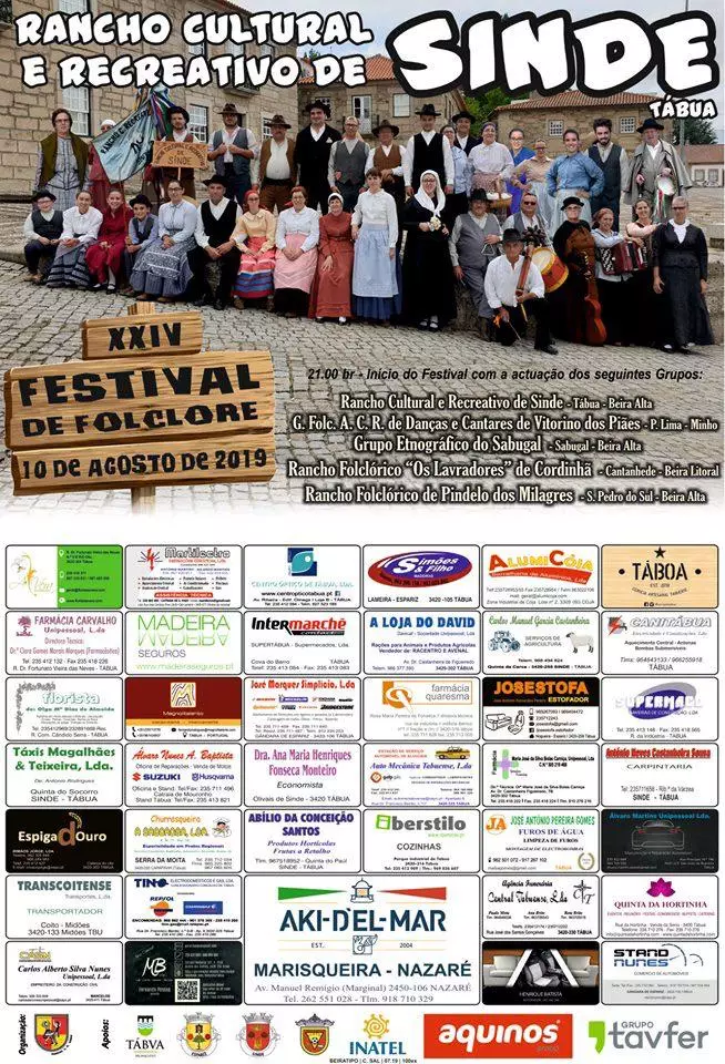 Realiza-se a 10 de agosto de 2019, o XXIV Festival de Folclore do Rancho Cultural e Recreativo de Sinde, a partir das 21h00m, no recinto da Antiga Escola Primária de Sinde.